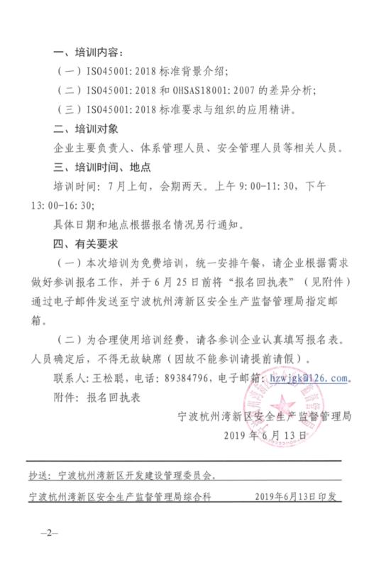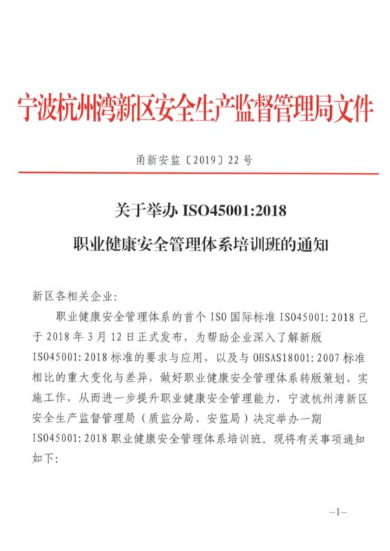 關于舉辦ISO45001:2018職業健康安全管理體系培訓班的通知